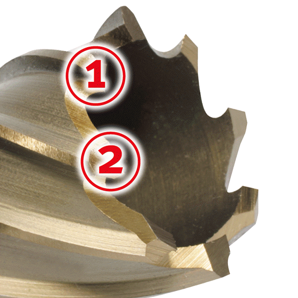 ALFRA fabrica sus propios cortadores anulares, a diferencia de la gran mayoría de los fabricantes de taladros magnéticos, quienes los dan a fabricar a terceras compañías. Esto se traduce en un control de calidad mas riguroso y principalmente en la posibilidad de ofrecer dichos cortadores a precios mas atractivos para el distribuidor y por ende, para el usuario final. ALFRA tiene dos líneas fundamentales de cortadores anulares: HSS-Co (Acero Alta Velocidad con aleación de Cobalto), los cuales son fabricados con Acero M 42 en una aleación con Cobalto y son sometidos a un tratamiento térmico a base de gases, el cual lleva tres pasos, y con el que se obtiene una dureza extrema y una larga vida. En esta presentación de cortadores anulares ofrecemos dos largos de profundidad de corte: 1″ (25mm) y 2″ (50mm). Con estas opciones se brinda la posibilidad a aquellos usuarios que regularmente perforan grosores pequeños, hasta de 1″ (25mm), de utilizar los cortadores con largo de profundidad de corte de 1″ (25mm) obteniendo un considerable beneficio económico en el precio. Para aquellos cuyas aplicaciones rebasan la profundidad de corte de 1″ (25mm), se tiene la línea de 2″ (50mm) de profundidad de corte. También se tiene la opción, en caso necesario y por ser ALFRA el fabricante de sus cortadores, de solicitar alguna medida especial de profundidad de corte. En esta línea de HSS-Co Co (Acero Alta Velocidad con aleación de Cobalto), se ofrecen diámetros desde 1/2″ hasta 2″ (en 16avos), tanto en 1″ como en 2″ de profundidad de corte. Esta línea de cortadores, por sus características técnicas, pueden afilarse varias veces, alargando su vida y haciendo mas rentable su operación.