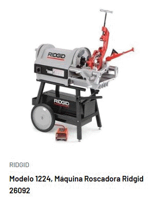 MODELO: 1224 Especificaciones: Diámetro nominal del tubo 1/4"-2" (6 mm-50 mm) a 36 RPM, 2-1/2"-4" (65 mm-100 mm) a 12 RPM, 4"-6" (100 mm-150 mm) con roscadora a engranajes 161. Diámetro del perno 1/4" a 2" (6 mm a 50 mm). Control del motor Conmutador de pedal integrado y rotatorio de servicio pesado para retroceso, apagado (OFF) y avance. Caja de engranajes Caja de engranajes de dos velocidades, relación 3:1. Mandril Tipo martillo con mordazas reemplazables accionadas por balancín. Dispositivo de centrado trasero Accionado por leva. Bomba de lubricación Autocebable, tipo Gerotor, inversión automática y flujo constante. Lubricación A través del cabezal roscador Incluye: 1 - Roscadora 1224 1 - Cabezal 2 1/2"-4" 1 - Cabezal 1/4"-2" 1 - Cortador 1 - Escariador 3 - Juegos de Peines de 1/2"-4" 1 - Galón de Premium Oil 1 - Rueda de repuesto 6 - Llaves Allen 1 3/4" 1 - Caja de Herramientas |
