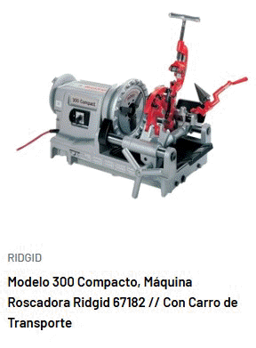 COMPACTO Especificaciones: Capacidad 1/8"-2" Motor 115V, 1/2HP, 50-60Hz Velocidad 38 o 52RPM Incluye: 1 - Roscadora Modelo 300 Compacta 1 - Cabezal 811A 1 - Escariador 1 - Cortador con Llanta E-1032 1 - Set de Peines de 1/2"-3/4" 1 - Set de Peines de 1"-2" 1 - Galón Nu-Clear Thread Cutting Oil 1 - Carro de Transporte 250 |